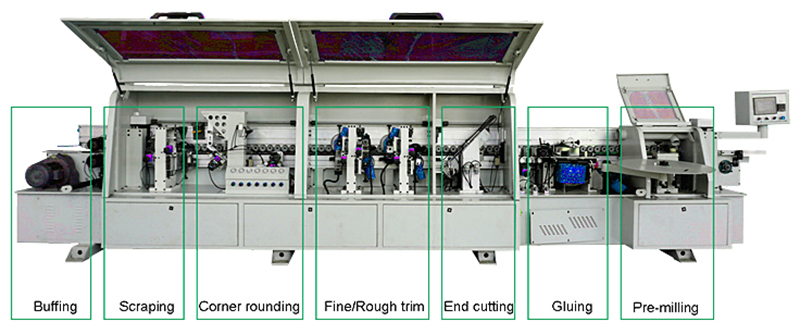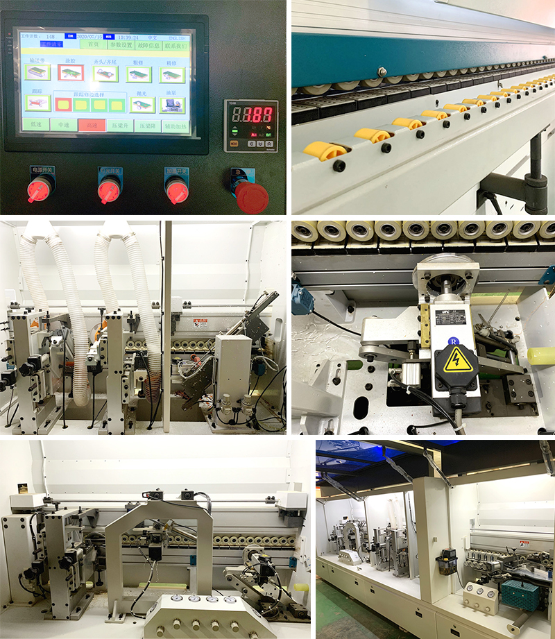 Dillo che la bordatrice automatica ha 8 funzioni principali, utilizzate principalmente per la bordatura di scrivanie, armadi, guardaroba e mobili lineari. Applicazione della colla automatica e precisa, lucidatura fronte-retro in un unico pezzo. La colla viene applicata in modo uniforme e il trasporto è stabile.
