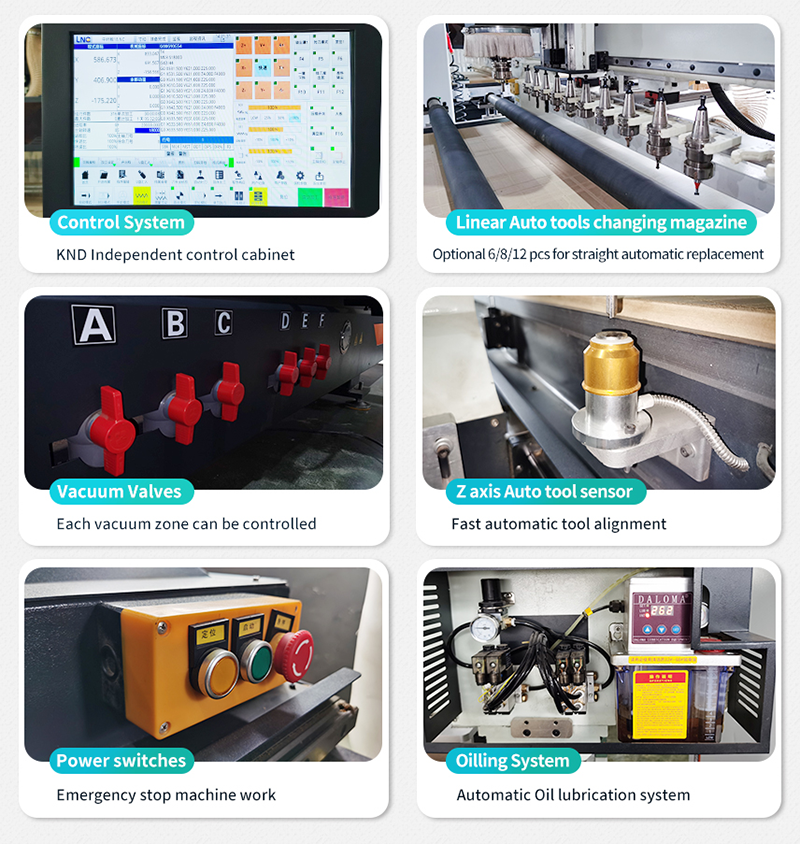 Il router CNC in legno atc a prezzo di fabbrica adotta il sistema di controllo LNC di Taiwan, 12 strumenti rapidi di cambio. Ha il taglio regolare di alta precisione. Utilizzato principalmente nella lavorazione di mobili in pannelli.